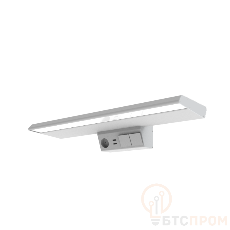Корпус длиной 605 мм выполнен из ударопрочного АБС-пластика. Устройство интегрировано в прикроватную розетку и включает три независимых выключателя: для основного и ночного освещения, а также для двух розеток 220В и USB-порта для зарядки гаджетов. Это делает светильник идеальным для оснащения палат в больницах, санаториях, домах престарелых, а также для удобства в домашней спальне или гостинице.