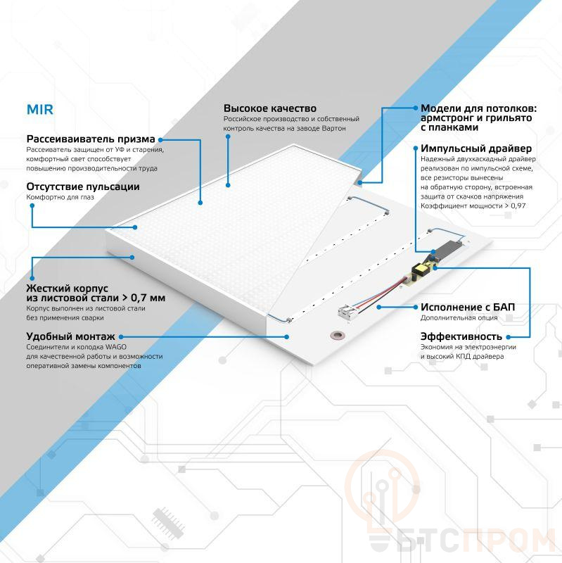 Светодиодный светильник MiR 30Вт — это современное и энергоэффективное решение для организации основного освещения в коммерческих и общественных помещениях. Модель с нейтральной белой цветовой температурой 4000K создает комфортную для глаз атмосферу, способствующую концентрации внимания.