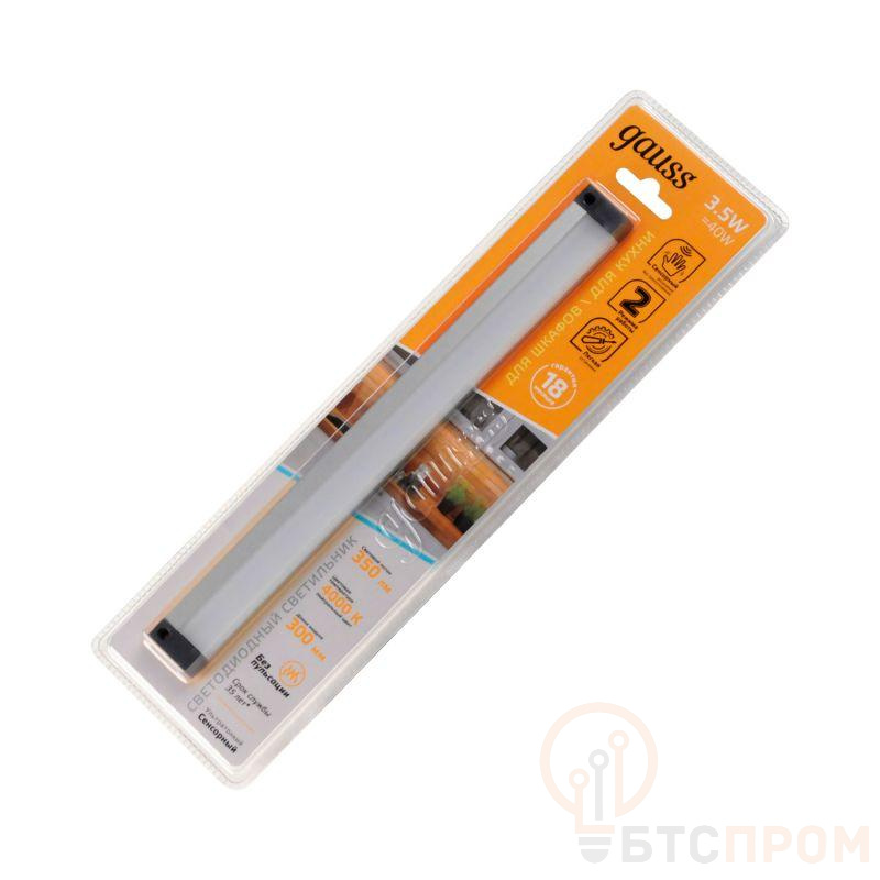 Линейные светодиодные светильники от Gauss- прекрасное решение для подсветки рабочей зоны на кухне, письменного стола, в мастерской или в любом другом пространстве. Сенсорный выключатель позволяет удобно управлять освещением. В зависимости от модели для включения светильника достаточно только приблизиться к нему или произвести легкий взмах рукой или сделать короткое касание к корпусу. Сенсорные светильники Gauss выполнены из алюминия, поэтому обладают легким весом и прочной конструкцией. Светильники различаются по мощности, световому и длиной самого светильника. Особенностью светильников от Gauss является возможность последовательного соединения в линейку нескольких светильников с помощью коннекторов и простая установка – достаточно их приклеить к поверхности с помощью двухстороннего скотча или прикрепить его с помощью металлических скоб. Набор установочных креплений для двух вариантов монтажа входят в комплектацию данного изделия.