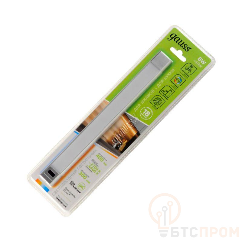 Линейные светодиодные светильники от Gauss- прекрасное решение для подсветки рабочей зоны на кухне, письменного стола, в мастерской или в любом другом пространстве. Сенсорный выключатель позволяет удобно управлять освещением. В зависимости от модели для включения светильника достаточно только приблизиться к нему или произвести легкий взмах рукой или сделать короткое касание к корпусу. Сенсорные светильники Gauss выполнены из алюминия, поэтому обладают легким весом и прочной конструкцией. Светильники различаются по мощности, световому и длиной самого светильника. Особенностью светильников от Gauss является возможность последовательного соединения в линейку нескольких светильников с помощью коннекторов и простая установка – достаточно их приклеить к поверхности с помощью двухстороннего скотча или прикрепить его с помощью металлических скоб. Набор установочных креплений для двух вариантов монтажа входят в комплектацию данного изделия.