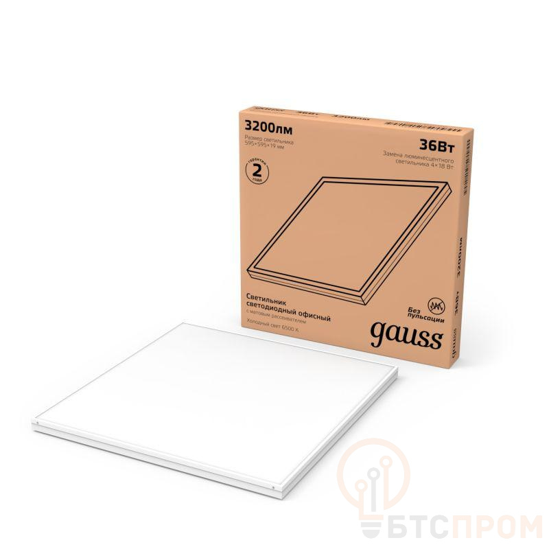 Светильник светодиодный Офис 36Вт 6500К IP20 3150лм 595х595х19мм ДВО офисный матов. рассеив. GAUSS 842123340
