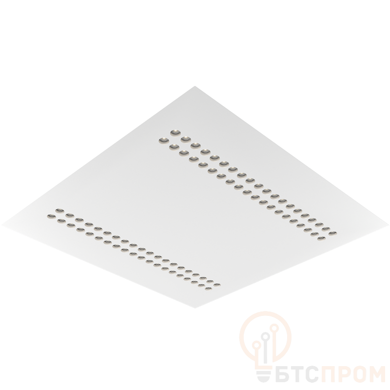 Светодиодные светильники для офисно-административных, учебных и других общественных учреждений. Оптическая система представляет собой линзовую оптику, закрытую маской. Таким образом уже под небольшими углами наблюдения источники света скрыты от наблюдателя и обобщенный показатель дискомфорта благодаря используованию двух типов линз D60 и D90 может варьироваться от 13 до 19 (13<UGR<19). По запросу возможно создание модификаций под различные виды потолочных систем и кромок, а также изменение габаритов, цвета корпуса и цветовой температуры. Встраиваются в подвесные потолки типа Армстронг с шириной полки несущего Т-образного профиля 15 и 24 мм, а также возможны модификации под потолки типа clip in. Цельнометаллический сварной корпус из листовой стали, покрытый белой порошковой краской. Драйвер интегрирован в светильник.