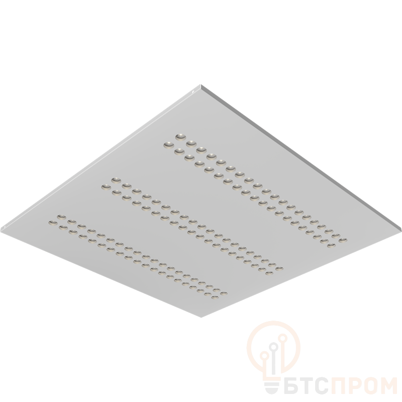 Светодиодные светильники для офисно-административных, учебных и других общественных учреждений. Оптическая система представляет собой линзовую оптику, закрытую маской. Таким образом уже под небольшими углами наблюдения источники света скрыты от наблюдателя и обобщенный показатель дискомфорта благодаря используованию двух типов линз D60 и D90 может варьироваться от 13 до 19 (13<UGR<19). По запросу возможно создание модификаций под различные виды потолочных систем и кромок, а также изменение габаритов, цвета корпуса и цветовой температуры. Встраиваются в подвесные потолки типа Армстронг с шириной полки несущего Т-образного профиля 15 и 24 мм, а также возможны модификации под потолки типа clip in. Цельнометаллический сварной корпус из листовой стали, покрытый белой порошковой краской. Драйвер интегрирован в светильник.