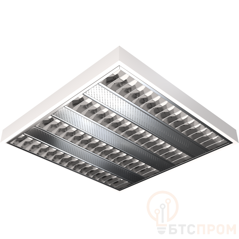 Универсальный светильник для офисных и учебных помещений с бипараболической отражающей решеткой из алюминия марки MIRO и рассеивателями из ПММА, обеспечивающими комфортный свет, отсуствие бликов на мониторах компьютеров. Крепление светильника на поверхность потолка. Так же светильник можно встраивать в подвесные потолки типа "Армстронг" с шириной полки несущего Т-образного профиля 15 и 24 мм. Цельнометаллический сварной корпус, покрытый порошковой краской белого цвета. Внутри корпуса установлены линейные светодиодные модули и драйвер.