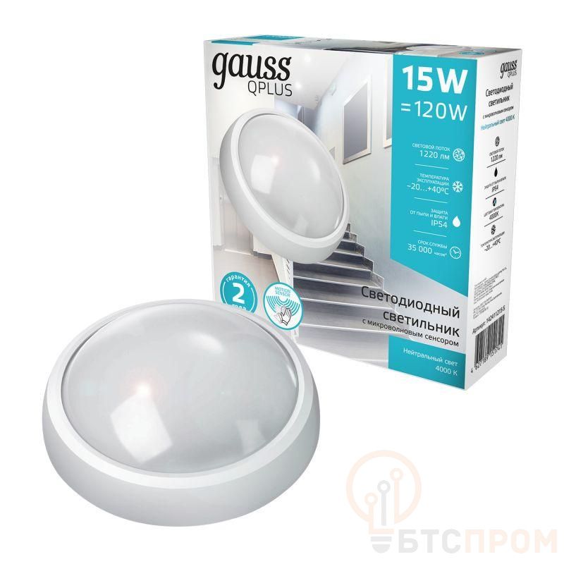Светодиодные светильники Gauss Qplus предназначены для общего освещения наземных/подземных проходов, проездов, подъездов, лестничных клеток, входных групп, балконов, технических и подсобных помещений, в том числе, с повышенными требованиями к пылевлагозащите. В данной серии используется драйвер, обеспечивающий стабильную работу светильника при напряжении сети от 160В до 260В. Доступны модели с микроволновым датчиком движения. Декоративное кольцо позволяет скрыть монтажные отверстия и следы герметика между корпусом и рассеивателем.
