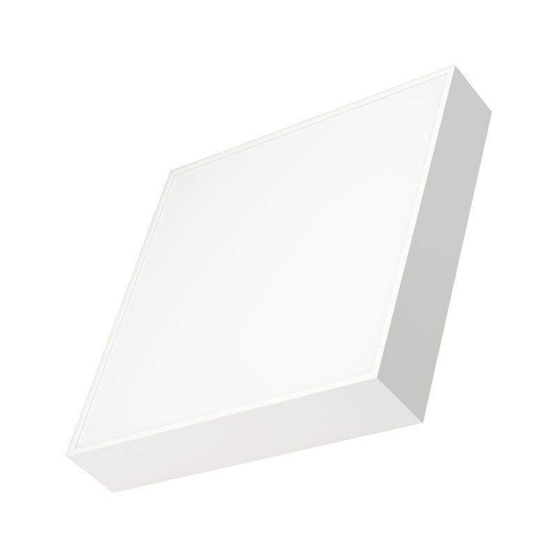 Поставка под заказ от 96 шт. Накладной светильник. Мощность 30 Вт, св. поток 2000-2540 лм, 85 лм/Вт, дневной 4000 K, CRI>90, угол 120°, напряжение питания 230 В. Белый квадратный корпус из алюминия, экран PC, степень защиты IP40. Размер: длина 350 мм, ширина 350 мм, высота 64 мм. Монтаж накладной. Драйвер 27-42 В, 800 мА, пульсация <5%.