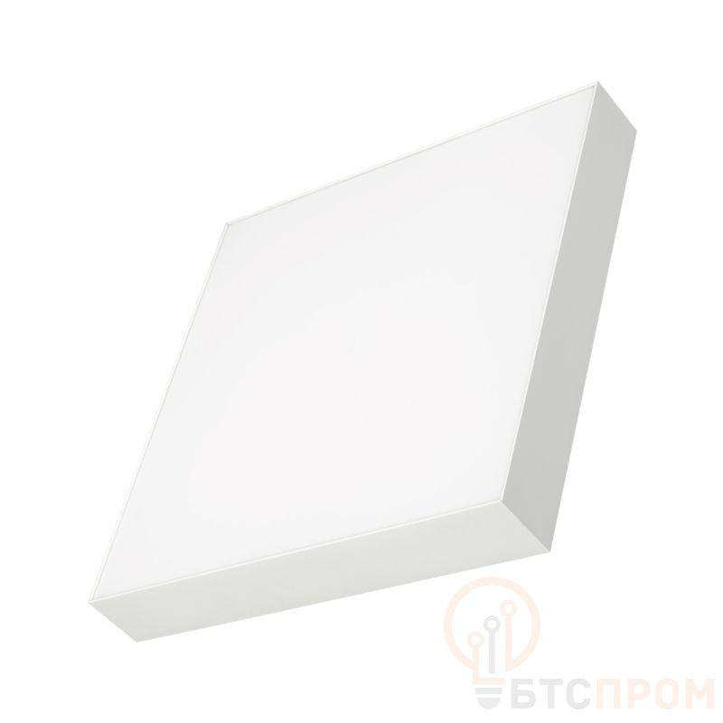 Накладной светильник. Мощность 40 Вт, св. поток 2590-3200 лм, 80 лм/Вт, теплый 3000 K, CRI>90, угол 120°, напряжение питания 230 В. Белый квадратный корпус из алюминия, экран PC, степень защиты IP40. Размер: длина 400 мм, ширина 400 мм, высота 64 мм. Монтаж накладной. Драйвер 27-40 В, 1000 мА, пульсация <5%.