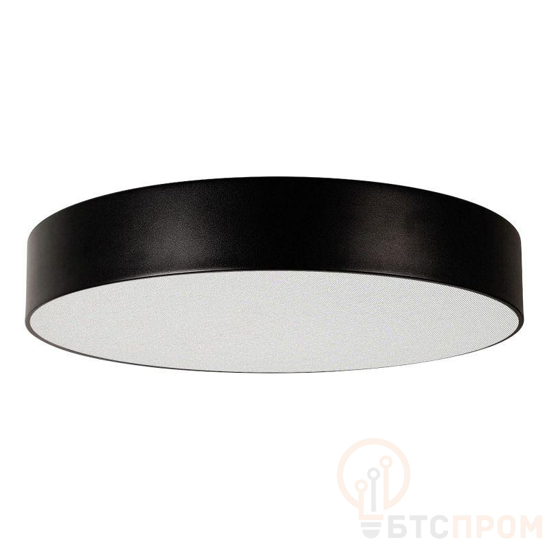 Накладной интерьерный светильник. Мощность 50 Вт, св. поток 4050 лм, 80 лм/Вт, дневной 4000 K, CRI>80, угол 100°, напряжение питания 230 В. Черный круглый корпус из алюминия, степень защиты IP20. Призматический акриловый рассеиватель. Размер: диаметр 600 мм, высота 100 мм. Монтаж накладной. Драйвер 28-42 В, 1200 мА, пульсация <2%.