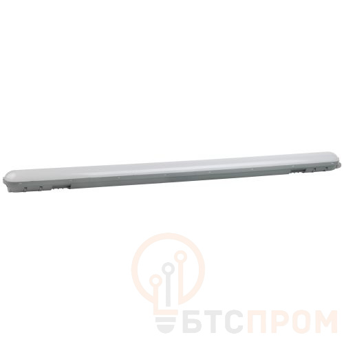 Корпус светильника имеет высокую степень защиты IP65, что делает его полностью пыленепроницаемым и защищенным от струй воды. Эта характеристика позволяет использовать его в условиях повышенной влажности и запыленности, таких как производственные цеха, складские комплексы, автомойки, гаражи, подвалы и другие подсобные помещения. Длина прибора составляет 1200 мм, а матовый рассеиватель обеспечивает равномерное и комфортное для глаз светораспределение без бликов.