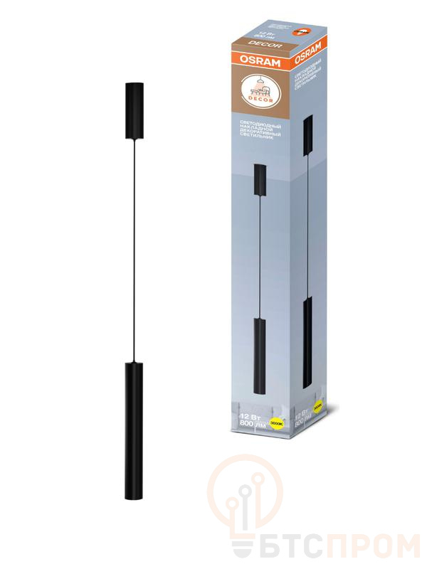 Светильник светодиодный TUBE SURFSP DLTB 12Вт 800лм 3000К теплый бел. свет подвесной черн. OSRAM 4607194233083