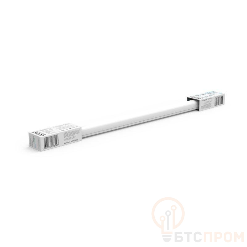 Корпус светильника выполнен из ДСП и имеет компактные размеры 1490x40x30 мм. Линейный дизайн с матовым рассеивателем способствует равномерному распределению света без бликов. Степень защиты IP65 гарантирует надежную работу в условиях повышенной влажности и запыленности, обеспечивая защиту от струй воды и пыли.