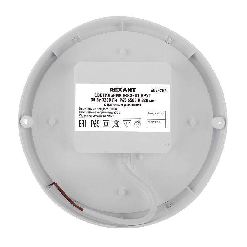 Светильник светодиодный ЖКХ-01 30Вт 6500К IP65 3200лм 205х37мм пылевлагозащ. круг с датчиком движения Rexant 607-286