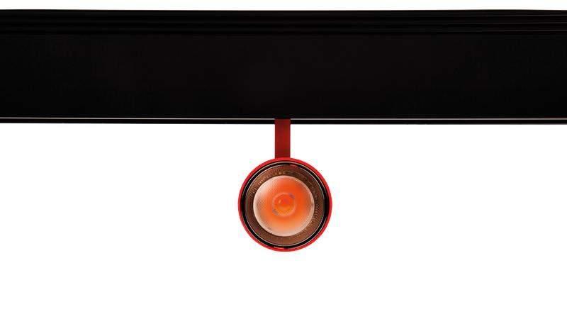 Светильник выполнен в стильном красном корпусе, что добавляет ему визуальной выразительности. Он предназначен для монтажа на трековые шинопроводы с напряжением 220В. Основная сфера применения — точечная подсветка витрин, стендов, картин и зон товаров в торговых залах, галереях, музеях, выставочных пространствах и современных интерьерах магазинов, обеспечивая яркое и энергоэффективное освещение.