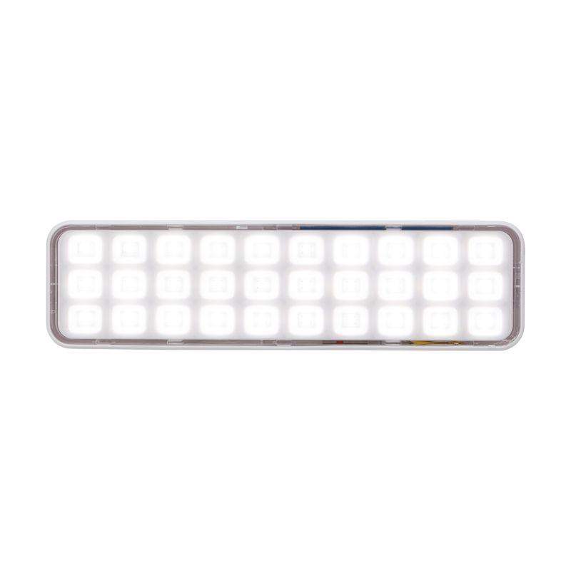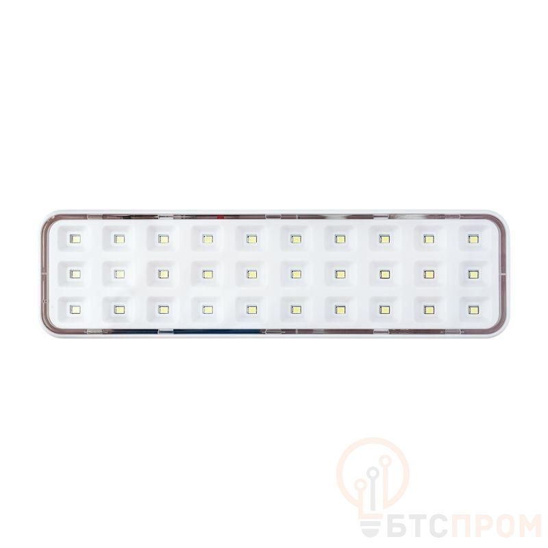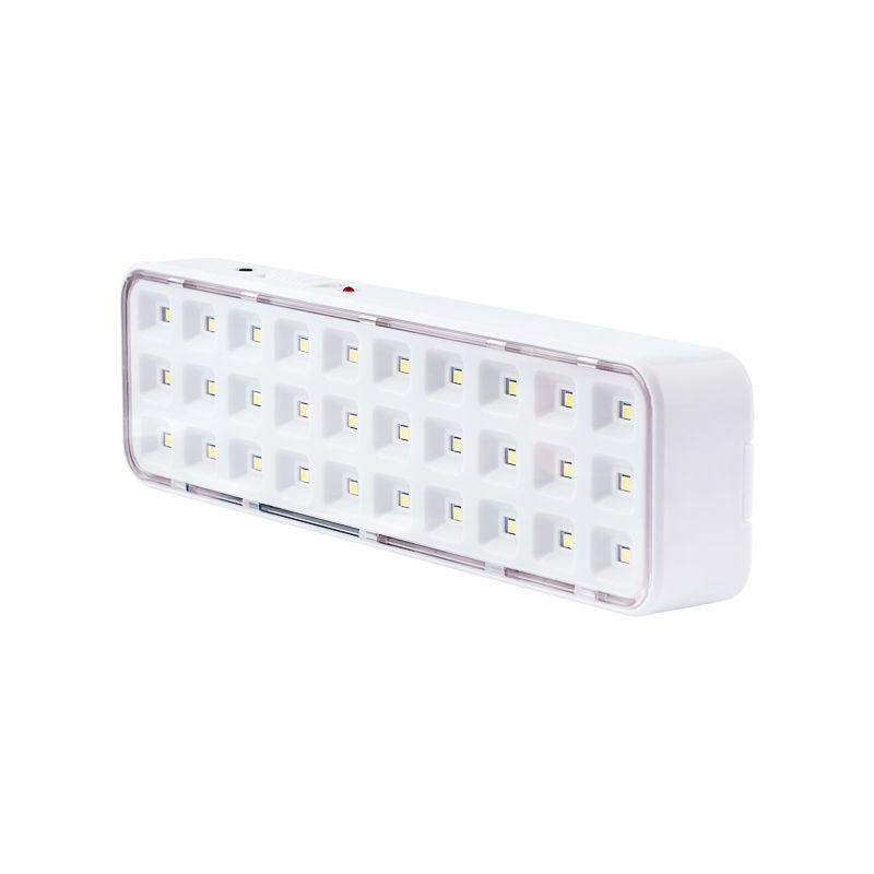 Аккумуляторный светильник непостоянного действия используется для подсветки путей эвакуации и рабочих зон при отключении питания. Оснащен режимами: 30%, 100% и кнопкой «тест». Является универсальным решением для аварийных систем освещения. Источником света в светильнике являются светодиоды, которые дают преимущество в сравнении с применяемыми, в настоящее время, люминесцентными лампами и лампами накаливания. Светильник имеет настенное крепление. Встроенный аккумулятор сохраняет работоспособность до 3 часов без подзарядки. Способ крепления: настенный Номинальное напряжение: АС230 В, 50/60 Гц Мощность: 3 Вт Степень защиты: IP20 Время работы от аккумулятора: 180 минут Материал корпуса: пластик Источник света: LED Цветовая температура: 6500 К Размеры светильника: 201х27,8х55,5 мм Класс электробезопасности II