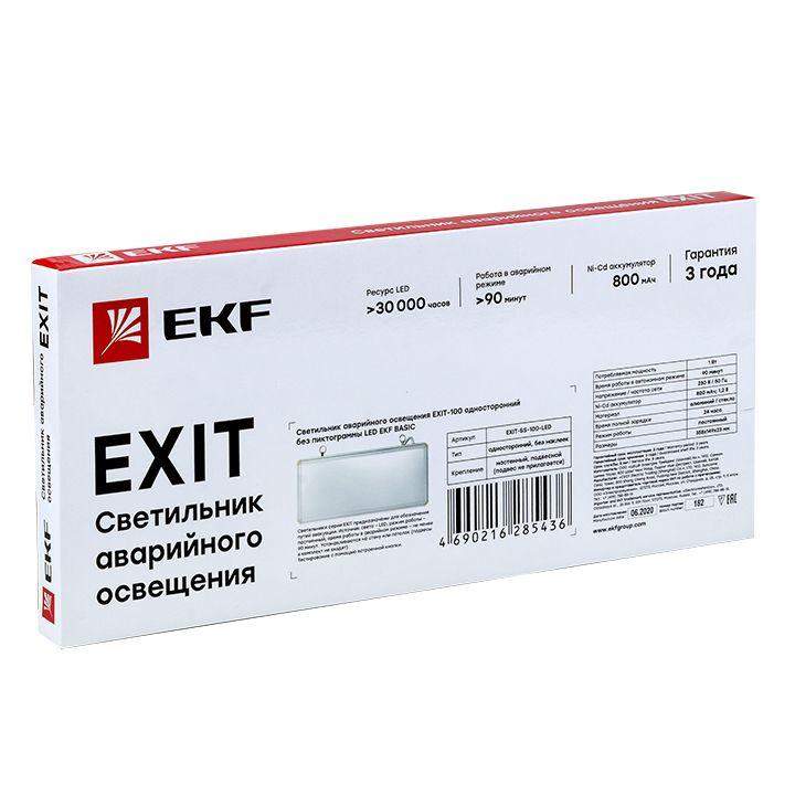 Светильник аварийного освещения EXIT-100 одностор. без пиктограммы LED Basic EKF EXIT-SS-100-LED
