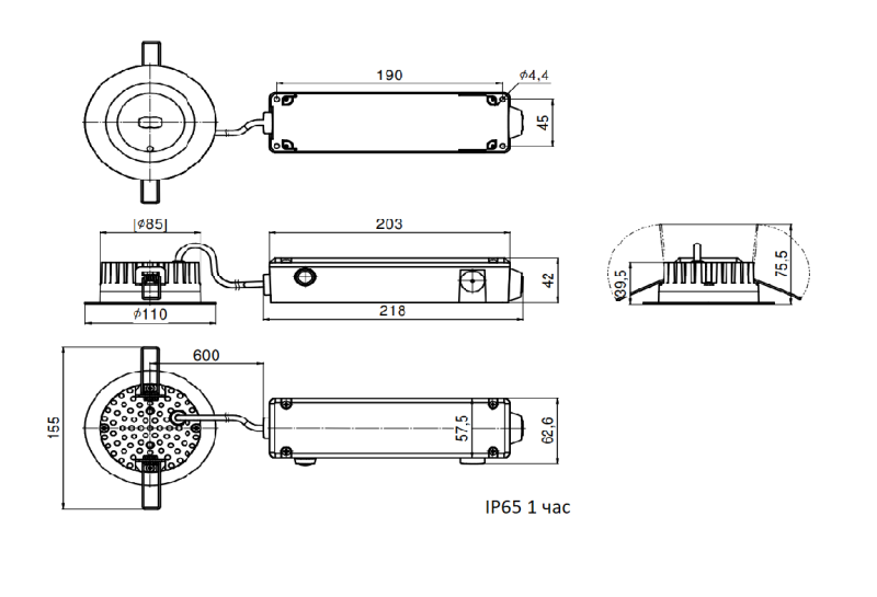 Аварийный светильник BS-ARUNA-81-L2-INEXI3 IP65 имеет номинальный световой поток в аварийном режиме 300 лм. Аварийный светильник предназначен для освещения путей эвакуации и антипанического освещения в помещениях с подшивными потолками из ГКЛ и типа Армстронг. Благодаря компактным размерам ARUNA легко впишется в любые дизайнерские концепции, а высокая степень защиты от воздействий окружающей среды IP65 позволит использовать светильники в помещениях с повышенной запыленностью и влажностью, а также в объектах со спринклерной системой пожаротушения. Модель имеет непостоянный режим работы, нормируемая продолжительность аварийной работы: 1 ч. Номинальная потребляемая мощность 2,00 Вт. Класс защиты от поражения электрическим током: II. Тестирование и управление: Кнопка "Тест", TELECOMAND, AUTOTEST. Материал корпуса: поликарбонат. Материал рассеивателя: полиметилметакрилат. Степень защиты от внешних воздействий - IP65. Аварийный светильник предназначен для установки в потолок и имеет в комплекте все необходимые для этого крепления. Диаметр монтажного отверстия в потолке 86 мм. При проектировании и монтаже нужно учитывать, что светильники имеют выносной блок питания и требуют пространства для его установки. Дополнительные аксессуары не предусмотрены.
