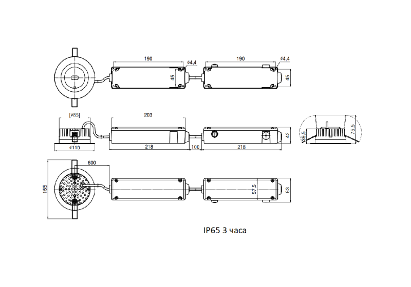 Аварийный светильник BS-ARUNA-83-L2-INEXI3 IP65 имеет номинальный световой поток в аварийном режиме 300 лм. Аварийный светильник предназначен для освещения путей эвакуации и антипанического освещения в помещениях с подшивными потолками из ГКЛ и типа Армстронг. Благодаря компактным размерам ARUNA легко впишется в любые дизайнерские концепции, а высокая степень защиты от воздействий окружающей среды IP65 позволит использовать светильники в помещениях с повышенной запыленностью и влажностью, а также в объектах со спринклерной системой пожаротушения. Модель имеет непостоянный режим работы, нормируемая продолжительность аварийной работы: 3 ч. Номинальная потребляемая мощность 2,60 Вт. Класс защиты от поражения электрическим током: II. Тестирование и управление: Кнопка "Тест", TELECOMAND, AUTOTEST. Материал корпуса: поликарбонат. Материал рассеивателя: полиметилметакрилат. Степень защиты от внешних воздействий - IP65. Аварийный светильник предназначен для установки в потолок и имеет в комплекте все необходимые для этого крепления. Диаметр монтажного отверстия в потолке 86 мм. При проектировании и монтаже нужно учитывать, что светильники имеют выносной блок питания и требуют пространства для его установки. Дополнительные аксессуары не предусмотрены.