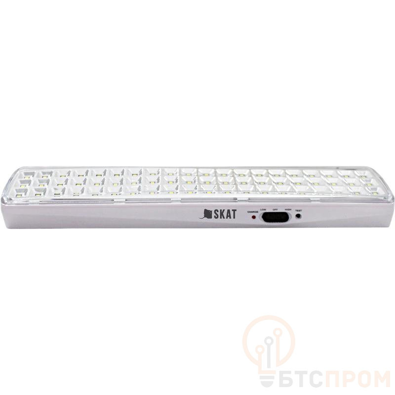 Li-ion АКБ 2400 мАч, 60 светодиодов; 2 режима работы; время резерва — до 1,5/4 часов; поворотные кронштейны для потолочного крепления; 2 варианта настенного крепления; защита АКБ от перезаряда и глубокого разряда; яркие светодиоды.