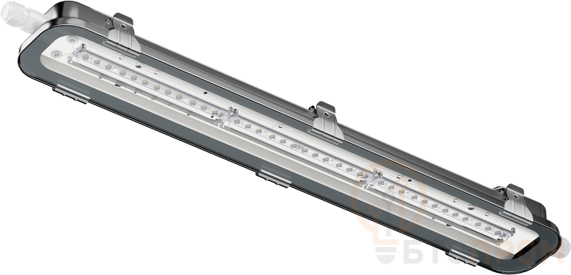 Конструкция. Штампованный корпус из нержавеющей стали марки AISI304 позволяет эксплуатировать светильник в тяжелых условиях. Силиконовый уплотнитель и клипсы жесткой фиксации надежно притягивают стекло к корпусу, что обеспечивает степень защиты IP66/IP67. Кабельный ввод с интегрированной клеммной колодкой позволяет подключать светильники без разбора корпуса и упрощает монтаж светильников в линию. Оптическая часть. Рассеиватели изготовлены из закаленного стекла. Модульные линзы собственного производства из поликарбоната образуют угол рассеяния светового потока 60° или 90°. Модификации светильников без линз имеют угол светового потока 120°. Источник света. Используются светодиоды HONGLI 2835 повышенной эффективности. Способ монтажа. Монтируется на опорную поверхность, а также крепится на подвесах (в комплект не входят) к потолку. Входящая в монтажный комплект скоба позволяет поворачивать светильник на 30° в обе стороны. Для регулировки угла наклона в пределах 180° используйте комплект КМ-01-2 (приобретается отдельно). При необходимости подвеса светильника на трос используйте комплект для подвесного монтажа КМП-01-0 (приобретается отдельно). Области использования. Промышленные объекты, объекты ЖКХ. Дополнительная информация. Светильник укомплектован блоком аварийного питания.
