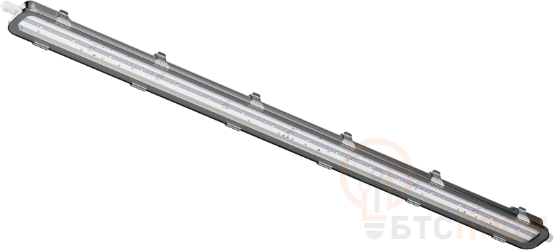 Конструкция. Штампованный корпус из нержавеющей стали марки AISI304 позволяет эксплуатировать светильник в тяжелых условиях. Силиконовый уплотнитель и клипсы жесткой фиксации надежно притягивают стекло к корпусу, что обеспечивает степень защиты IP66/IP67. Кабельный ввод с интегрированной клеммной колодкой позволяет подключать светильники без разбора корпуса и упрощает монтаж светильников в линию. Оптическая часть. Рассеиватели изготовлены из закаленного стекла. Модульные линзы собственного производства из поликарбоната образуют угол рассеяния светового потока 60° или 90°. Модификации светильников без линз имеют угол светового потока 120°. Источник света. Используются светодиоды HONGLI 2835 повышенной эффективности. Способ монтажа. Монтируется на опорную поверхность, а также крепится на подвесах (в комплект не входят) к потолку. Входящая в монтажный комплект скоба позволяет поворачивать светильник на 30° в обе стороны. Для регулировки угла наклона в пределах 180° используйте комплект КМ-01-2 (приобретается отдельно). При необходимости подвеса светильника на трос используйте комплект для подвесного монтажа КМП-01-0 (приобретается отдельно). Области использования. Промышленные объекты, объекты ЖКХ. Дополнительная информация. Светильник укомплектован блоком аварийного питания.