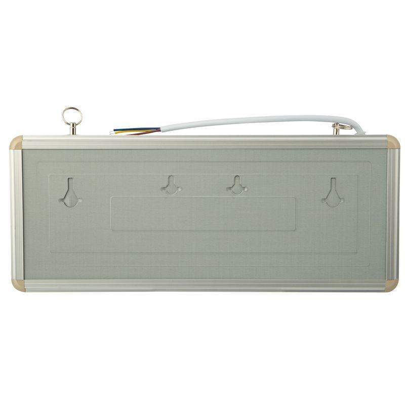 Аварийно-эвакуационные светильники предназначены для установки во внутренних помещениях промышленных предприятий, гражданских зданий и сооружений. Обеспечивает освещение и сообщение необходимой информации (направление выхода, выхода) в случае прекращения подачи электроэнергии. Источником света в светильнике является светодиодная линейка, использование которой дает преимущество в сравнении с применяемыми, в настоящее время, люминесцентными лампами и лампами накаливания. Светильник имеет два варианта крепления: настенное и потолочное. Световые указатели имеют встроенный аккумулятор и сохраняют работоспособность при отсутствии напряжения (230 В) в течение 90 минут. Корпус светильника выполнен из алюминиевого сплава. Функцию плафона выполняет стеклянная панель. Способ крепления: настенный, подвесной Исполнение: односторонний Номинальное напряжение: 230 В, 50 Гц Мощность: 3 Вт Степень защиты: IP20 Тип аккумуляторных батарей: никель-кадмиевые 1.2 В Время работы от аккумулятора: 90 минут Материал корпуса: алюминиевый сплав Источник света: LED Размеры стекла: 329x118 мм Размеры светильника: 355x145x26 мм