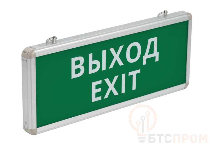 Прибор оснащен яркими светодиодами с суммарной мощностью 3 Вт, что обеспечивает достаточную освещенность для обозначения путей эвакуации. На лицевой панели размещена односторонняя светопропускающая панель с надписью «EXIT» (ВЫХОД) зеленого цвета по стандарту. Встроенный аккумулятор поддерживает автономную работу светильника в аварийном режиме не менее 1.5 часа после отключения сети.