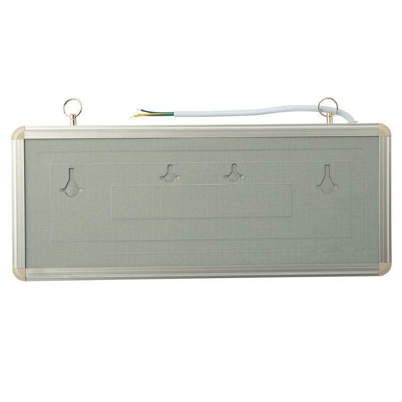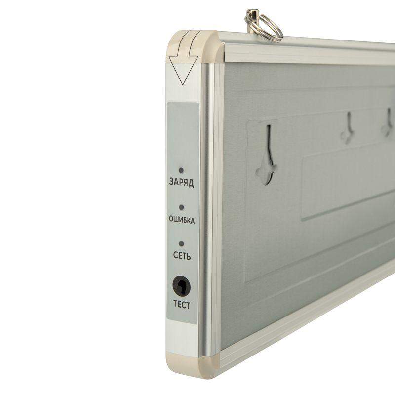 • Материал корпуса: алюминиевый сплав. Источником света в светильнике является светодиодная линейка, использование которой дает преимущество в сравнении с применяемыми в настоящее время люминесцентными лампами и лампами накаливания. Светильник имеет два варианта крепления: настенное и потолочное. Световые указатели имеют встроенный аккумулятор и сохраняют работоспособность при отсутствии напряжения в течение 90 минут.