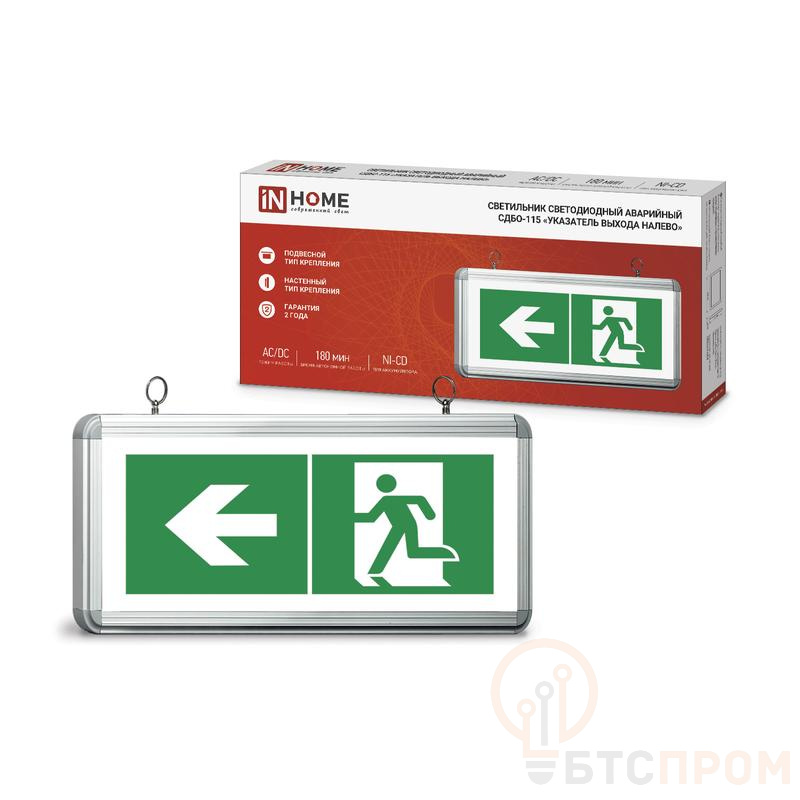 Светильник светодиодный СДБО-115 "УКАЗАТЕЛЬ ВЫХОДА НАЛЕВО" 3 часа NI-CD AC/DC аварийный односторон. IN HOME 4690612040257
