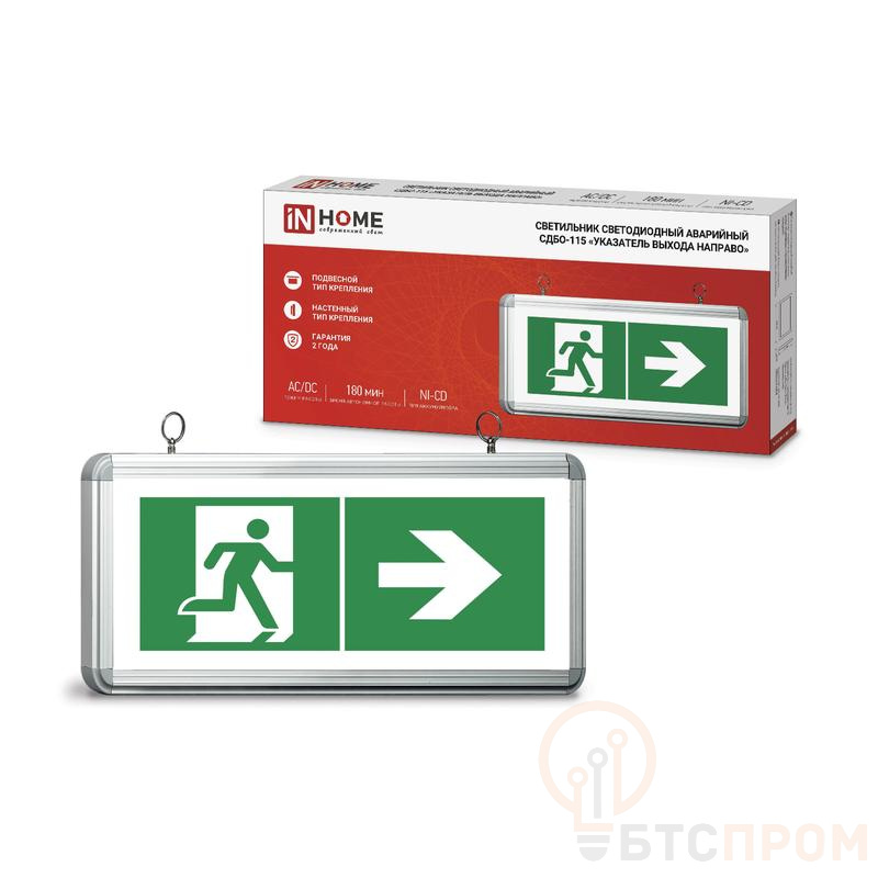Светильник светодиодный СДБО-115 "УКАЗАТЕЛЬ ВЫХОДА НАПРАВО" 3 часа NI-CD AC/DC аварийный односторон. IN HOME 4690612040264