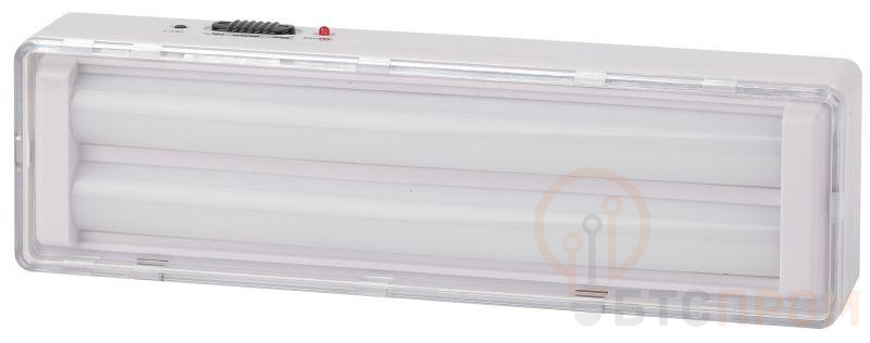Светильник аварийный светодиодный. Область применения: Предназначен для освещения путей эвакуации, коридоров, проходов, запасных дверей; как эвакуационные или указательные светильники (при наличии пиктограмм).; 2 режима работы; время автономной работы 300 минут; наличие кнопки "ТЕСТ" для проверки работы в аварийном режиме. Гарантия:3 года.Диапазон рабочих температур:(+1+35). Класс энергоэффективности:A. Климатическое исполнение:УХЛ4. Преимущества:2 режима работы; время автономной работы 360 минут; наличие кнопки "ТЕСТ" для проверки работы в аварийном режиме; наклейка "СТРЕЛКА" в комплекте.Цветовая температура:6500K. Материал корпуса:пластик. Габариты: 230x67x40мм. Потребляемая мощность:6Вт. Степень защиты от окружающей среды:IP20. Тип рассеивателя: прозрачный. Тип кривой: Д.Питающее напряжение светильника: 230Вт.