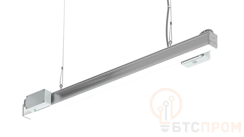 Устройство имеет степень защиты IP40, что позволяет использовать его в сухих внутренних пространствах с нормальными условиями эксплуатации: офисы, торговые залы, образовательные и медицинские учреждения. Светильник выполнен в корпусе из ударопрочного поликарбоната белого цвета, его габаритные размеры составляют 1195x55x55 мм. Монтаж осуществляется накладным способом на потолок или стену. Питание — 220 В, 50 Гц. Номинальная мощность составляет 50 Вт при световом потоке 5500 лм, что обеспечивает высокую световую отдачу и значительную экономию электроэнергии по сравнению с традиционными источниками света.