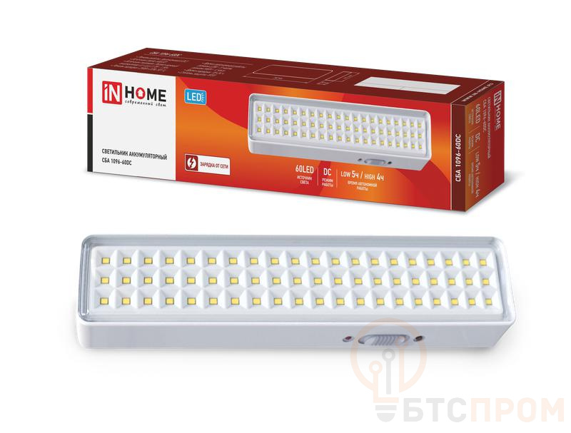 Светильник светодиодный СБА 1096-60DC 60LED 1.5А.ч lithium battery DC аварийный IN HOME 4690612029481