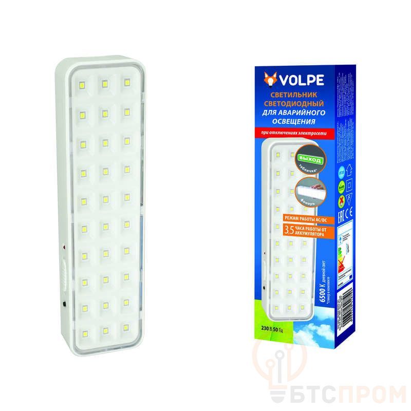 Светильник светодиодный ULR-Q401 2W/DW WHITE S01 авар. освещения "ВЫХОД" свет дневной 6500К встроен. аккум. AC/DС бел. Volpe UL-00002387