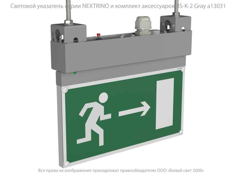 Световой указатель BS-NEXTRINO-73-S1-INEXI2 Gray имеет расстояние распознавания 30 метров. Световой указатель предназначен для обозначения эвакуационных выходов и направления движения по путям эвакуации в помещениях с повышенными требованиями к внешнему виду световых приборов и нормальными условиями эксплуатации: в офисно-административных зданиях, в торговых и выставочных залах, магазинах, кафе и т.д.. Совместимая серия знака безопасности BL-3015. Модель имеет постоянный режим работы, нормируемая продолжительности аварийной работы 3 ч. Номинальная потребляемая мощность 4,60 Вт. Класс защиты от поражения электрическим током: I Поддерживается тестирование и управление: Кнопка "Тест", TELECONTROL Материал корпуса сталь, порошковая эмаль Материал рассеивателя полиметилметакрилат Степень защиты от внешних воздействий IP40 Монтаж светового указателя производится на поверхность стен или потолка: Крепление е к стене производится с помощью одного входящего в комплект кронштейна; Для крепления на потолок или поверхность стен с помощью двух кронштейнов. Второй кронштейн BS-KA-2 заказывается отдельно. Возможно крепление к потолку с помощью одной или двух шпилек М8 необходимой длины. Шпильки в комплект поставки не входят. При креплении двумя шпильками требуется заказать дополнительно кронштейн BS-KA-2; Возможен подвес к потолку на тросах необходимой длины. Тросы и рым-болты в комплект не входят.