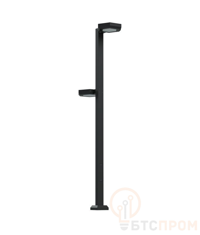 Конструкция выполнена в виде прочной колонны высотой 3000 мм с прямоугольным торшером габаритами 1010x440 мм. Модель оснащена двумя светодиодными модулями общей мощностью 80 Вт, обеспечивающими высокий световой поток 12180 лм. Степень защиты IP65 гарантирует полную защиту от пыли и струй воды, что позволяет эксплуатацию в любых погодных условиях.