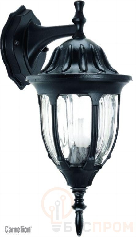 Светильник 4502 (НБУ 60Вт) черн. улично-садовый Camelion 10529 Изящный дизайн уличного светильника Camelion напоминает старинный уличный фонарь. Оригинальный дизайн светильника уместно сочетаетс с надежной конструкцией и высоким качеством материалов, из которых изготовлено основание и плафон. Светильник светит мягким рассеянным светом. Основание защищено от коррозии. Защитные термостойкие стекла выдерживают сезонные перепады температур и воздействие влаги. Изготовлен для освещения парковых аллей, газонов, придомовой территории у частных коттеджей и др. строений.
