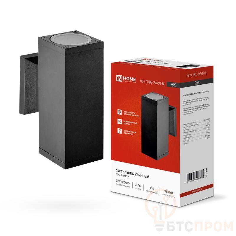 Светильник НБУ CUBE-2хA60-BL E27 IP65 уличный настен. двусторон. под лампу 2хA60 алюм. черн. IN HOME 4690612045153
