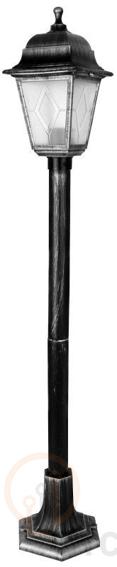 Светильник стационарный напольный предназначен для функционально-декоративного освещения скверов, парков, бульваров и рассчитан для работы в сети переменного тока с номинальным напряжением 220В и частотой 50Гц в условиях умеренного климата при температуре воздуха плюс 40°C... минус 45°C при среднегодовой относительной влажности воздуха не более 80% при плюс 15 °C. Светильник имеет усиленную изоляцию и не имеет элементов для заземления, защищен от пыли и от брызг Светильник пригоден для установки непосредственно на поверхности из нормально воспламеняемых материалов. Camelion PP6201 C42 НТУ 04-60-002 У1 "Оскар 4" черный+серебро, размер 170х1000х190мм, источник света - ЛОН, тип лампы 60/А/Е27, патрон - E27, питание ~230В, 50Гц, макс. мощность60Вт, материал корпуса - полипропилен / полистирол, IP44
