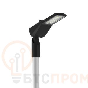 Корпус выполнен из алюминиевого сплава с порошковым покрытием RAL 9005 (черный муар), что гарантирует высокую коррозионную стойкость и защиту от воздействия окружающей среды. Оптика светильника имеет степень защиты IP65, делая его пыленепроницаемым и защищенным от струй воды. Конструкция включает кронштейн с диаметром посадочной трубы 48 мм для удобного монтажа.