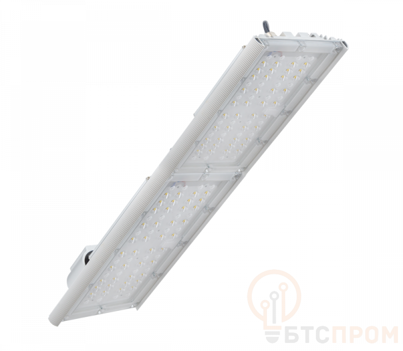 Корпус устройства обладает высокой степенью защиты IP67, что гарантирует полную защиту от пыли и возможность временного погружения в воду. Это позволяет эксплуатировать светильник в сложных условиях: на складах, производственных цехах, автостоянках, в портах и на стройплощадках. Важными техническими преимуществами являются высокий коэффициент мощности 0.95 PF, снижающий нагрузку на сеть, и коэффициент пульсации света менее 1%, что минимизирует усталость глаз. Консольный тип крепления (Ш1) предназначен для установки на опоры. Светильник отличается долгим сроком службы и минимальными затратами на обслуживание.