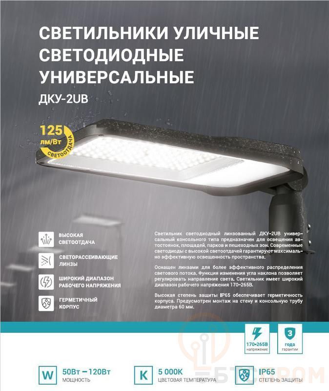 Светильник уличный линзованный светодиодный ДКУ-2UB 120Вт 230В 5000К 15000лм 125лм/Вт универсальный IP65 NEOX 4690612057439