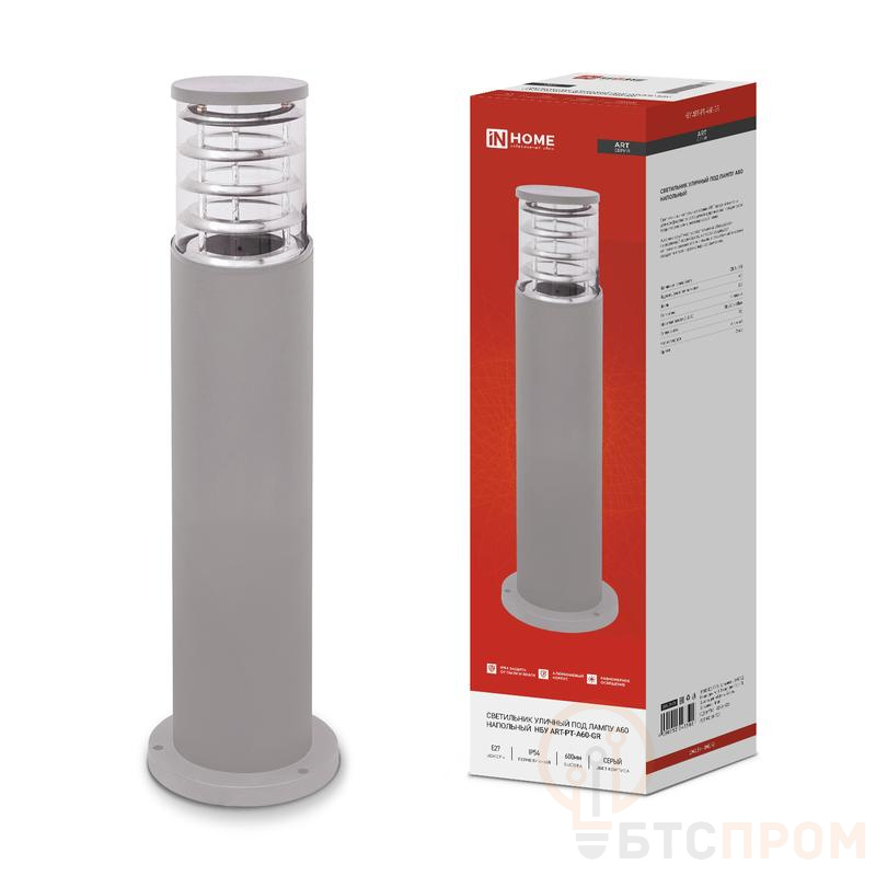 Светильник НБУ ART-PT-A60-GR E27 IP65 600мм уличный напольн. под лампу A60 алюм. сер. IN HOME 4690612048505