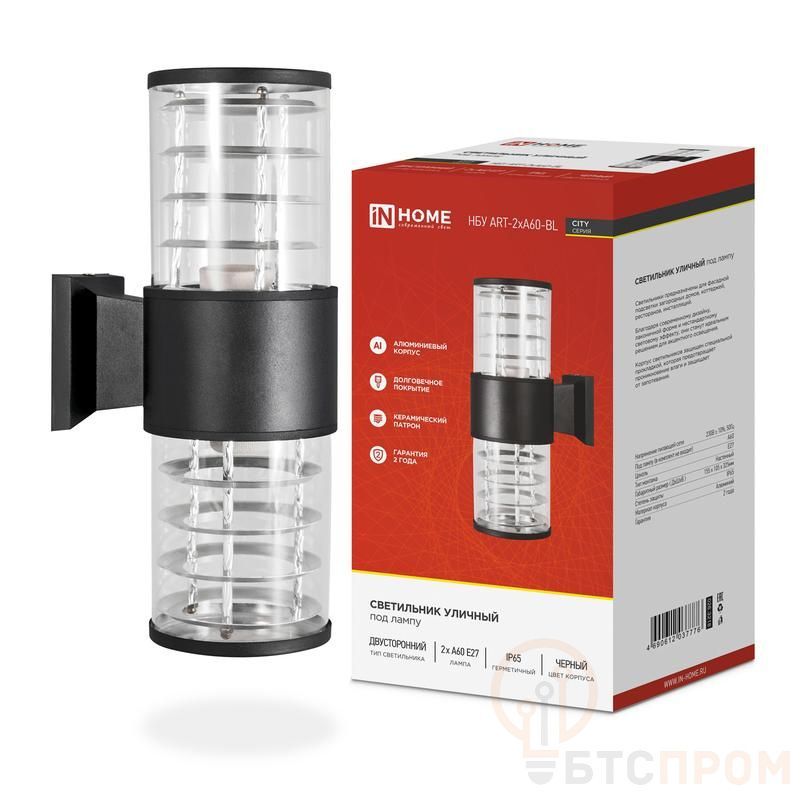 Светильник НБУ ART-2хA60-BL E27 IP65 230В уличный настен. двусторон. под лампу 2хA60 алюм. черн. IN HOME 4690612037776