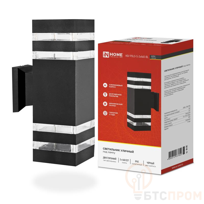 Светильник НБУ POLO-S-2хA60-BL E27 IP65 230В уличный настен. двусторон. под лампу 2хA60 алюм. черн. IN HOME 4690612037950