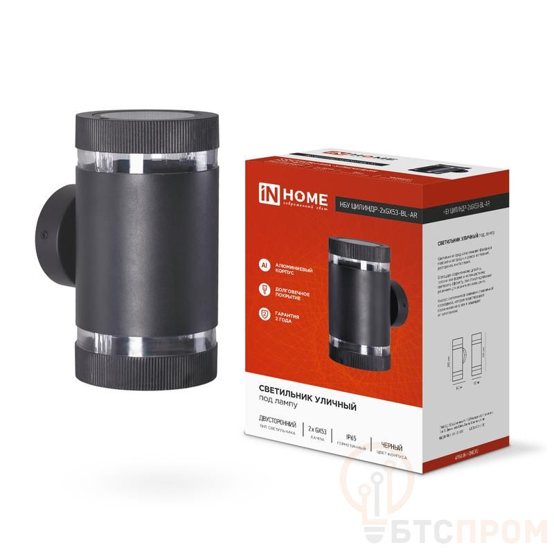 Светильник НБУ ЦИЛИНДР-2хGX53-BL-AR IP65 уличный настен. двусторон. под лампу 2хGX53 алюм. черн. IN HOME 4690612044675