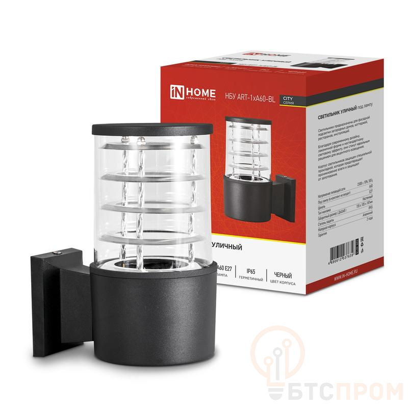 Светильник НБУ ART-1хA60-BL E27 IP65 230В уличный настен. односторон. под лампу 1хA60 алюм. черн. IN HOME 4690612037639