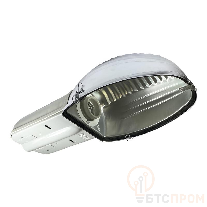 Консольный светильник для освещения улиц, дорог, площадей и других открытых пространств. Рекомендуется устанавливать на высоте 6…12 м под углом 15-20 град к горизонту, диаметр трубы кронштейна 48 мм. Корпус изготовлен из стали, покрашен порошковой краской. Отражатель алюминиевый специальной формы, обеспечивающий более равномерное освещение при меньших габаритах светильника. Рассеиватель выполнен из закаленного стекла, не бликует и не теряет пропускную способность света долгие годы. Патрон Е40. Рекомендуемый источник света лампа ДНАТ 100.