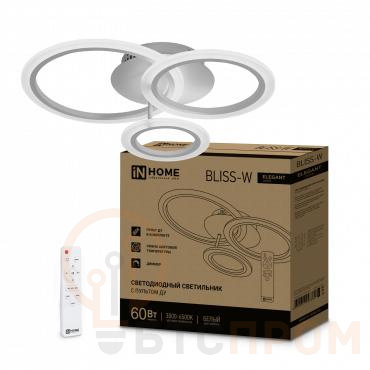 Светильник светодиодный ELEGANT BLISS-W 60Вт 3000-6500К 4700лм 230В 500х500х140мм с пультом ДУ бел. IN HOME 4690612043364