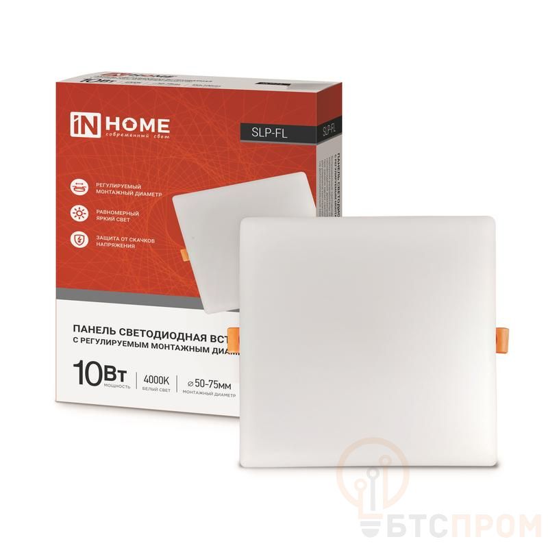 Светильник светодиодный SLP-FL 10Вт 4000К IP20 900лм 230В 103мм с рег. монтаж. 45-80мм встраив. безрамочн. панель бел. IN HOME 4690612041773