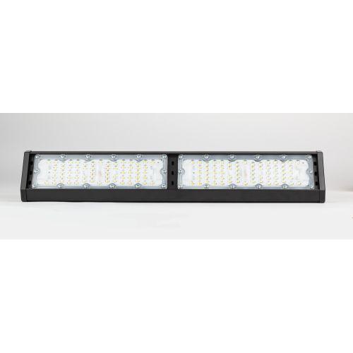 Светильник светодиодный высокомощный. Тип светильника: Замена ГСП, ЖСП, СДГ. Область применения: Предназначен для общего освещения складских и производственных помещений, в т.ч. открытых пандусов, торговых и выставочных павильонов, гипермаркетов, спортивных сооружений и т.п.. Преимущества: КСС "Г" - оптимальна для освещения складов; Коэффициент пульсации <5% - допустимо к применению в заводских цехах; 105Лм/Вт соответствует требованиям Постановления Правительства №1356. Потребляемая мощность, Вт: 100. Световой поток, Лм: 10 500. Светоодача, Лм/Вт: 105. Цветовая температура, К: 5000K. Индекс цветопередачи, Ra: Ra>80. Степень защиты от воздействия окружающей среды, IP: IP54. Климатическое исполнение: У2. Диапазон рабочих температур: (-45+40). Тип кривой силы света: Г (140/55). Коэффициент мощности, PF: >0,95. Коэффициент пульсации светового потока, %: <5%. Материал рассеивателя: поликарбонат. Материал корпуса: Алюминий. Цвет корпуса: черный. Габариты, мм: 502х103,5х73,5. Питающее напряжение, В: 170-265. Гарантия: 3 года.